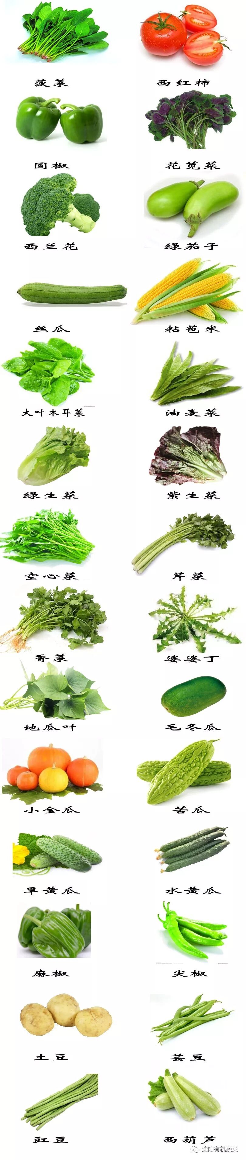 西红柿,麻椒,圆椒,尖椒,豇豆,茄子,旱黄瓜,水黄瓜,瓠瓜,绿倭瓜,丝瓜,苦瓜,金丝瓜,冬瓜,离花面瓜,大叶木耳菜,苦麻菜,菠菜,花苋菜,西兰花,玉米,绿生菜,空心菜,芹菜,香菜,小金瓜,土豆,芸豆,西葫芦