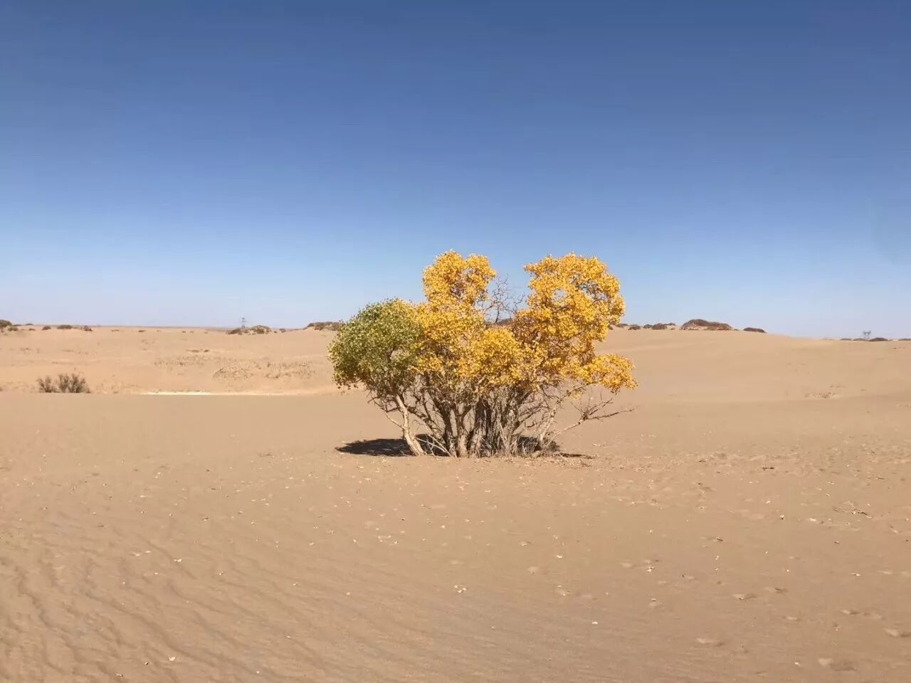 那天,我们工作得闲,巴音和图门带我去了沙漠里的胡杨林~