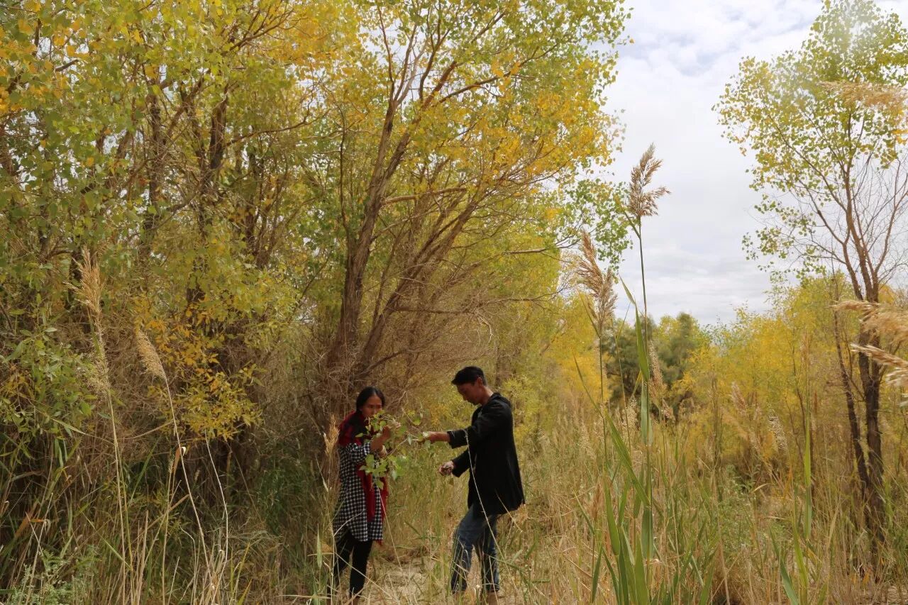 林中伴生着芦苇、梭梭、红柳、盐爪爪、骆驼刺等沙生植物,与这里栖息的野生动物野鸡、狐狸、狼、野兔等,共同组成一个特殊的生态系统~