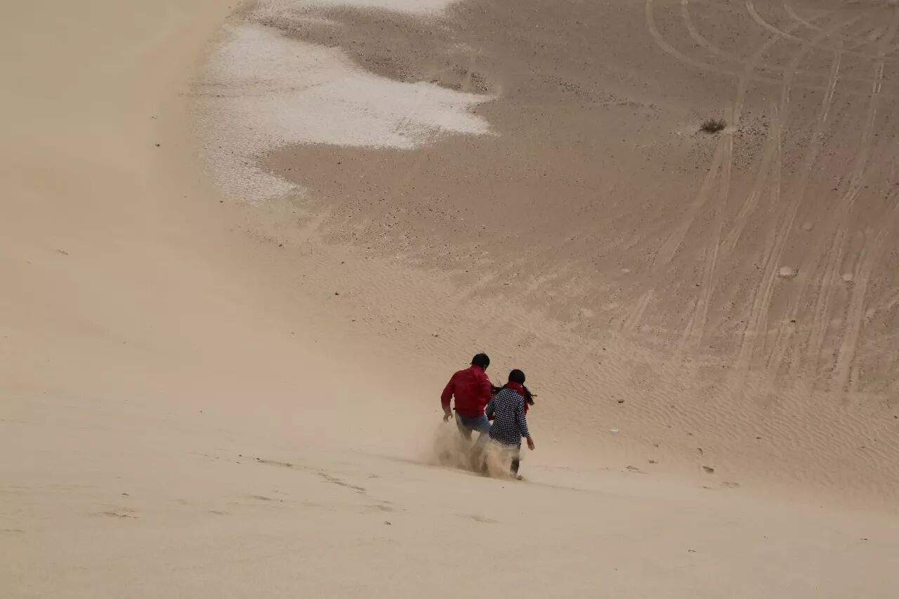 巴音开车,我们没有走正门,从胡杨林后面绕进去的,没有路,翻越丘陵,穿越河道,横穿了沙漠......眼前的大斜坡,我被吓得尖叫,车突然侧身停住了,车的一个轮胎差一点点就溜下去了,我下车的一瞬间腿都是软的,整个人都僵住了,图门把我抱下来的......