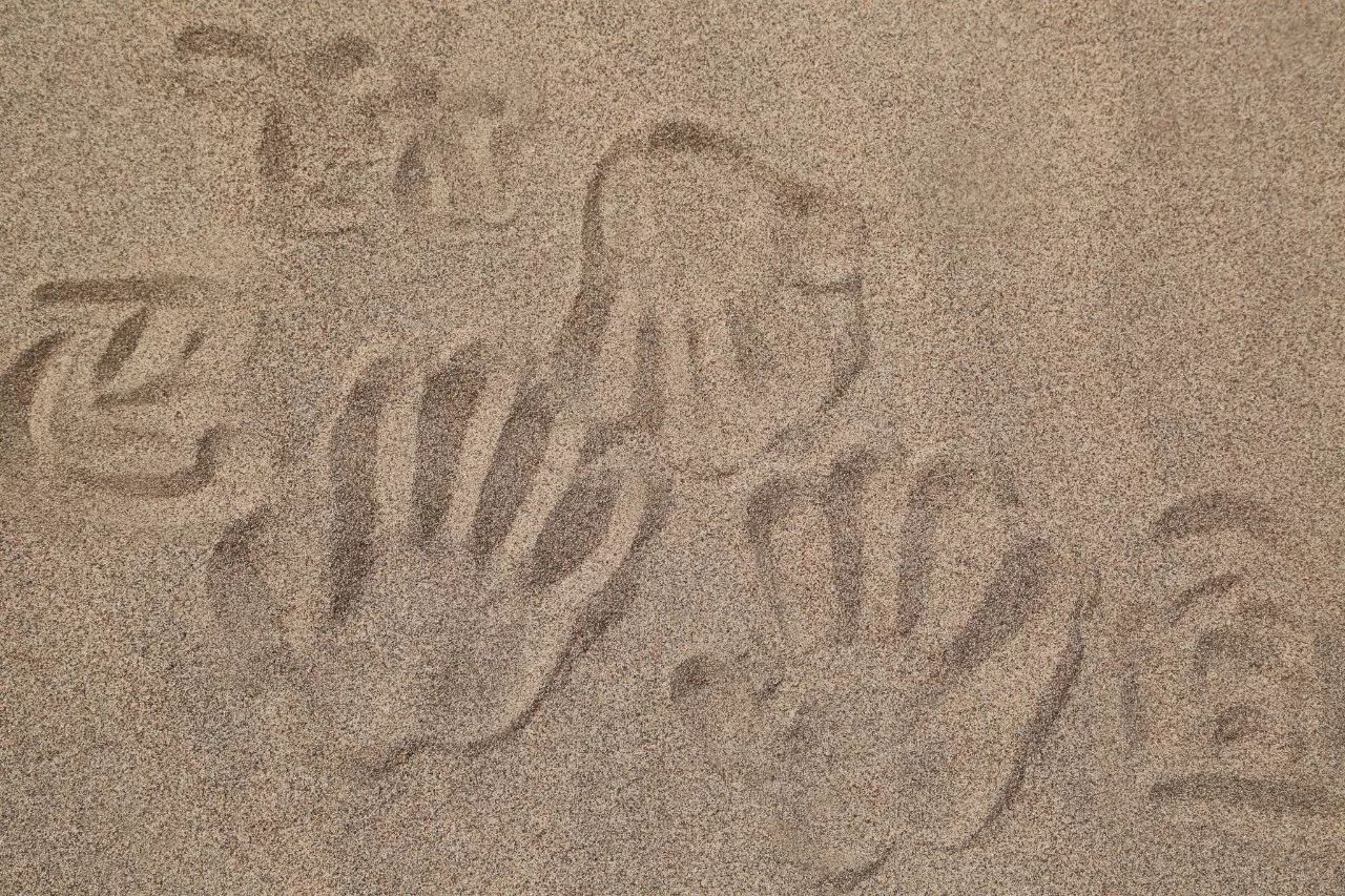 我光着脚在沙漠里漫步,沙子被太阳晒的暖暖的,一点也不凉,舒服极了~
