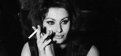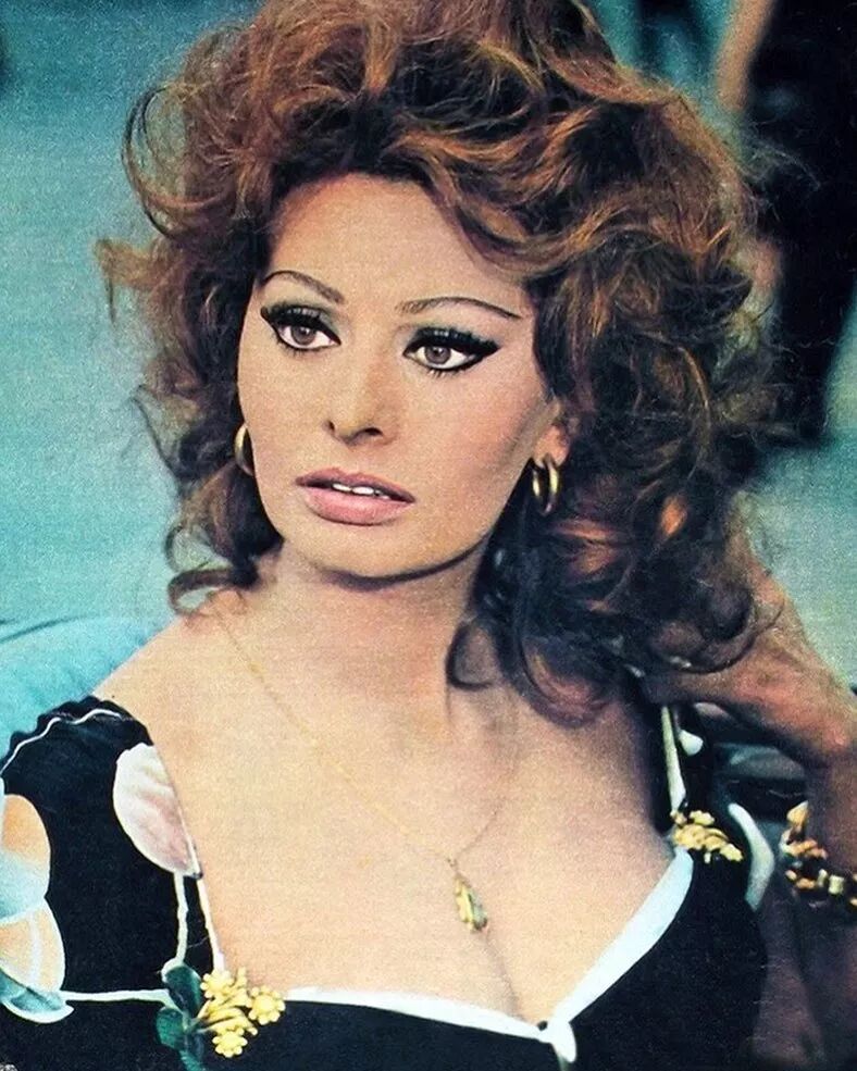 60年代的眉毛并没有一个统一的审美,最出名的要属 Sophia Loren 的眉毛。她原本的眉毛因为整个轮廓太靠近眼睛,而显得有些悲伤。所以她剃掉了它们,根根分明地绘出了精细的眉毛。