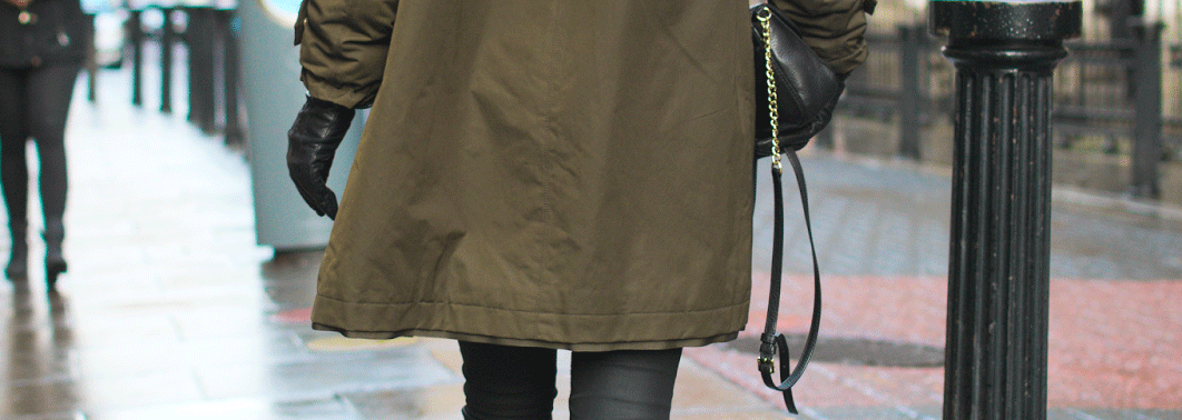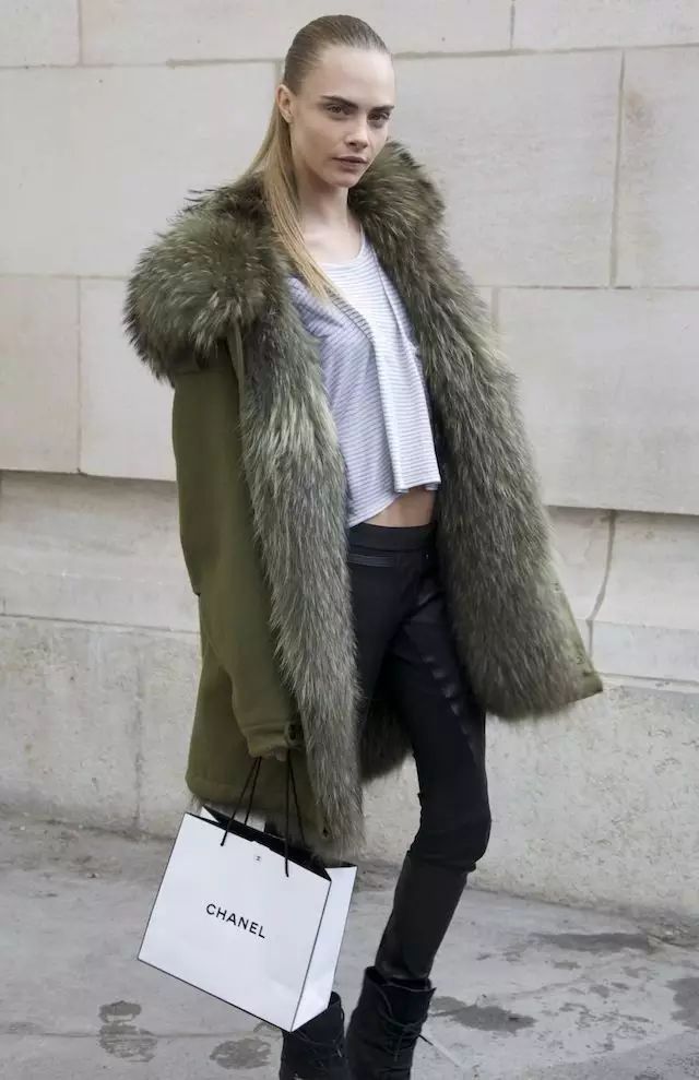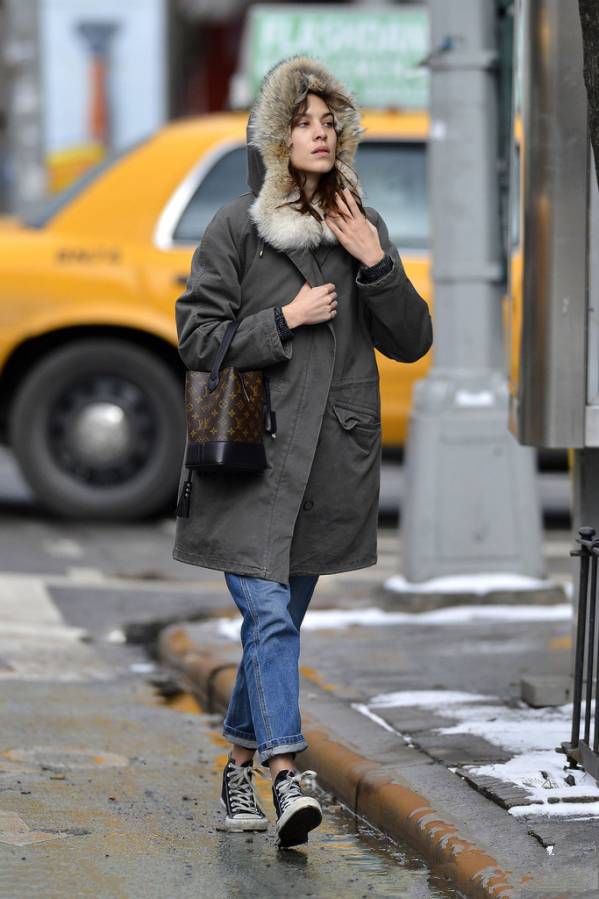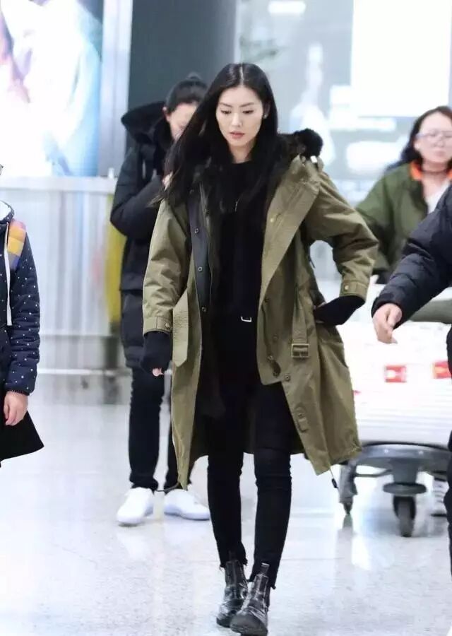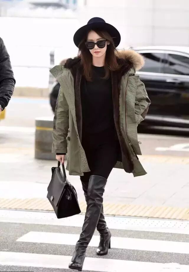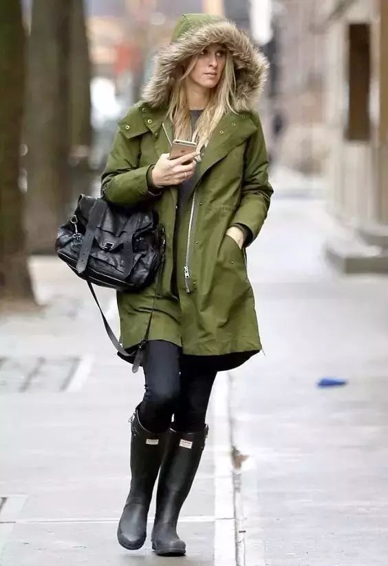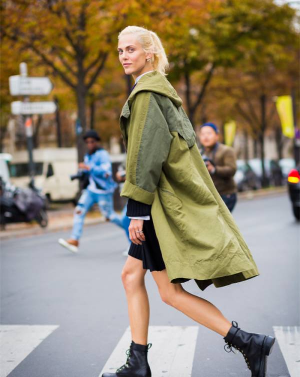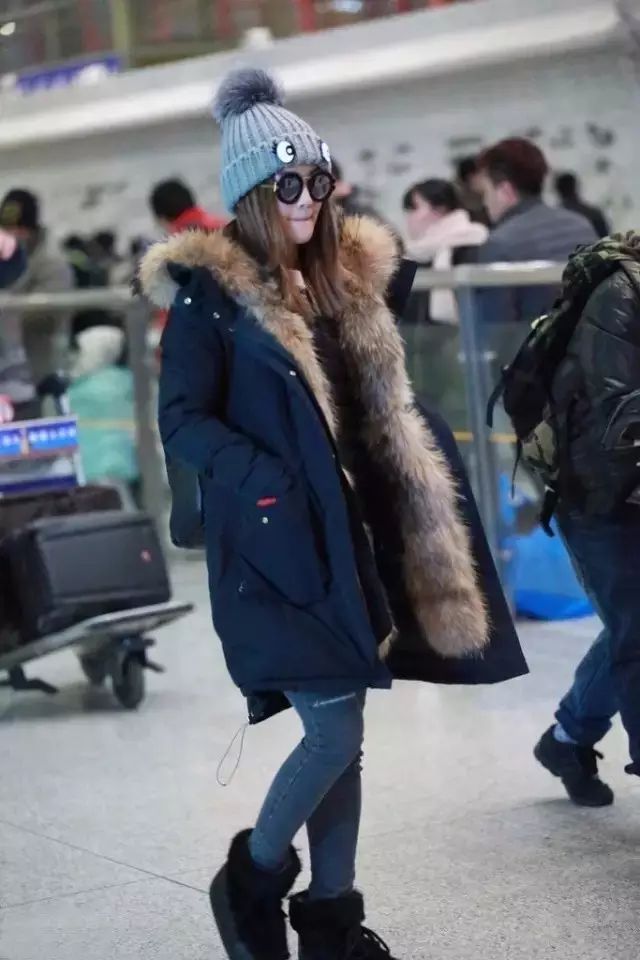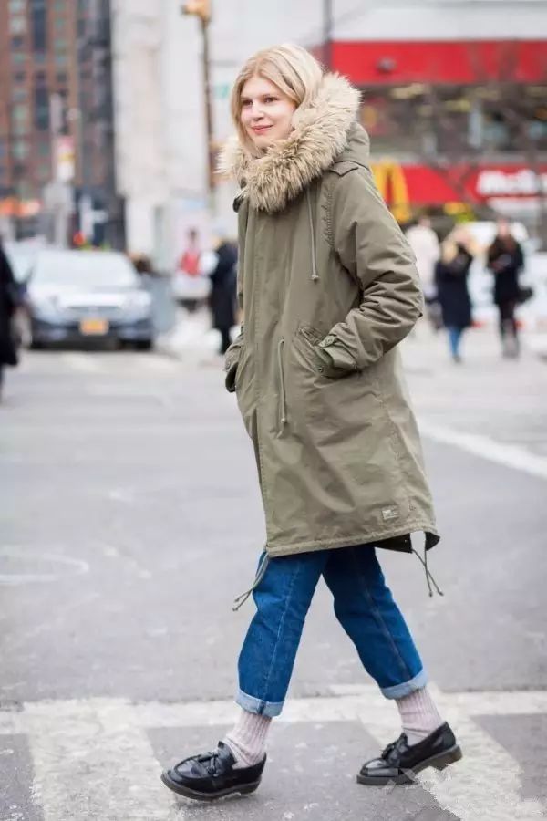 当然如果你可以为了风度不要温度的话,光腿穿派克大衣真的很好看!
