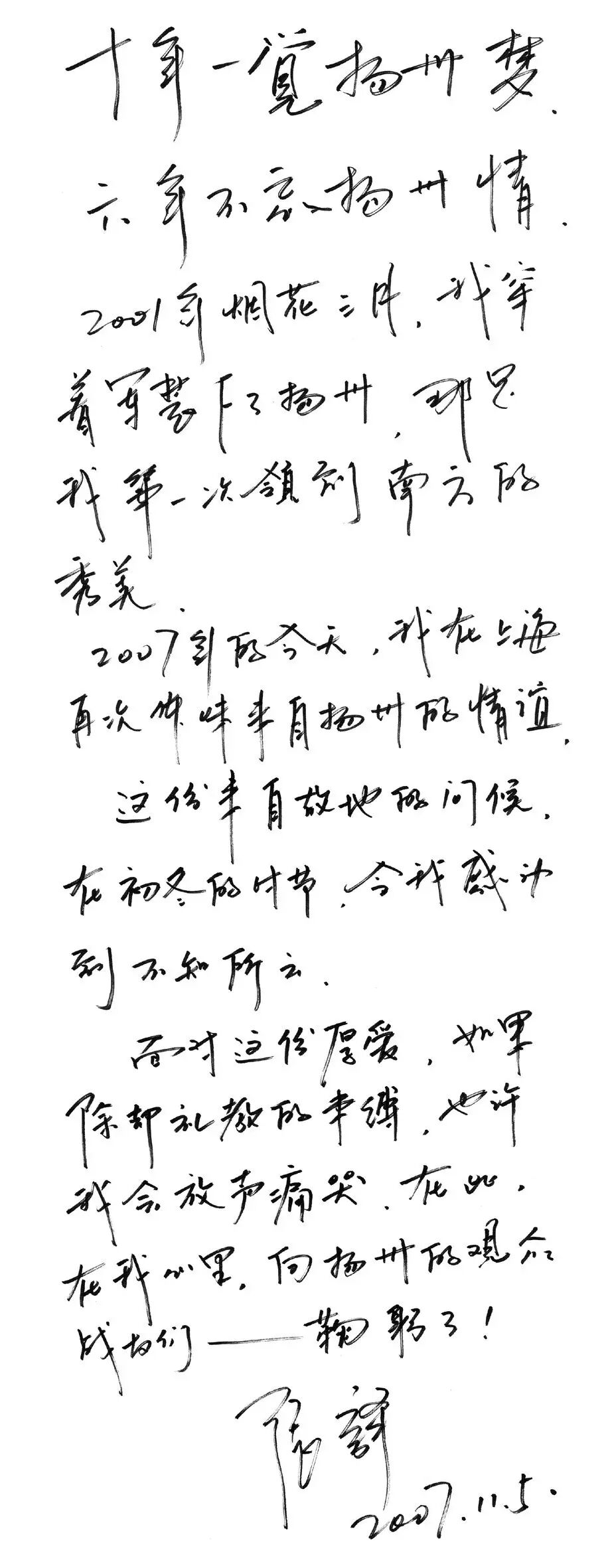 所谓字如其人,看张译2007年写给《扬州日报》的字,这字虽然没有到书法的高度,但估计可以秒杀娱乐圈大部分演员了,因为饱含真情——