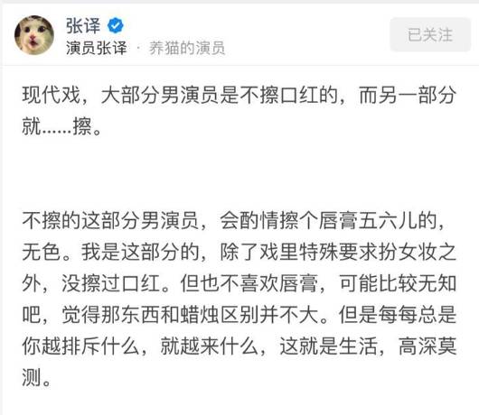 关于嘴的部分,张译其实还回答过这样一个问题:男演员拍电影的时候涂口红吗?