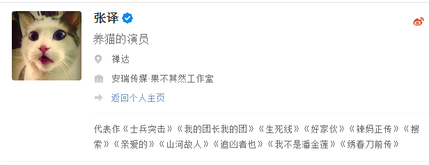 张译在知乎的头像是一只猫