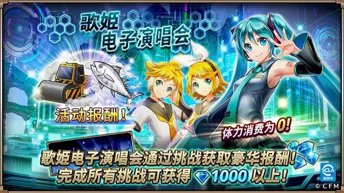 ※初音未来、镜音铃、镜音连为该活动攻略角色,拥有属性提升效果!