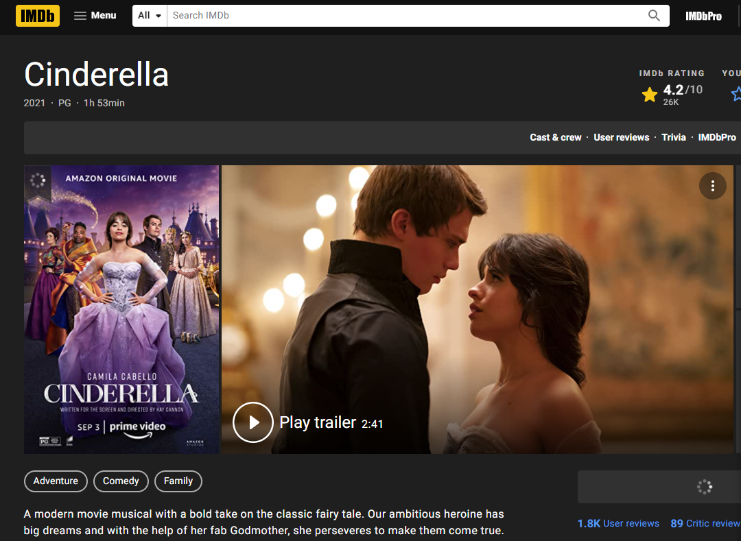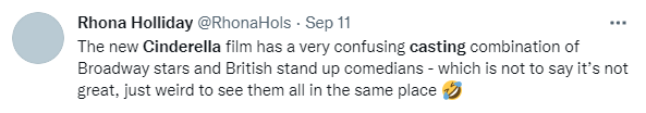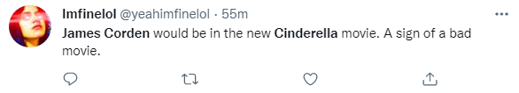 前段时间,由卡妹Camila Cabello主演的新版《灰姑娘》(Cinderella)电影上线了亚马逊的流媒体平台。 想必很多小伙伴和英大一样差异:什么?灰姑娘又翻拍了?还上映了? 是的,不过这次可不是迪士尼翻拍的,而是索尼拍的。 先来看看海报长啥样: 光从海报上看,这个辛德瑞拉和以往的画风差异有点大,看起来不太好惹的样子。 In Amazon Prime's modern musical version of "Cinderella," Camila Cabello makes her film debut as the titular character alongside musical veterans like Idina Menzel, Pierce Brosnan, and James Corden.在亚马逊上线的现代音乐剧版《灰姑娘》中,卡米拉·卡贝洛首次出演灰姑娘一角,与伊迪娜·门泽尔、皮尔斯·布鲁斯南和詹姆斯·柯登等音乐剧老将一起出演。 "Cinderella" retells the famous fairytale but with a few twists to update the story for a modern age. Billy Porter plays a genderless Fairy Godmother called Fab G, Cinderella now wants to become a dressmaker, and the wicked stepmother, played by Menzel, is misunderstood rather than evil.这个版本的《灰姑娘》重新讲述了这个著名的童话故事,但基于现代背景下进行了一些调整。比利·波特扮演了一个无性别的仙女教母叫Fab G,灰姑娘的梦想是成为一名裁缝,而门泽耳饰演的邪恶继母更多的是被误解而非本性邪恶。 嗯,介绍看起来,这版灰姑娘从角色到故事都有很大改变。 不过,从各方评价来看,外网网友并不买账,甚至可以说是疯狂吐槽。 先从卡司上来说,就很有争议,用观众的话来说,就是大杂烩。 饰演主角灰姑娘的卡妹是拉丁裔,而“灰姑娘”这个故事则一直以来被认为是以欧洲白人为背景展开。 不过有迪士尼小美人鱼由黑人饰演的前车之鉴在,很多观众也表示见怪不怪了。 比起她,“仙女教母”这个角色的槽点可能更大。 Rather than the grandmotherly fairy godmother of the original Disney classic Cinderella, children are presented with a young gay man wearing a ball gown, high heels, and carrying a magic wand. 孩子们看到的是一个穿着舞会礼服、高跟鞋、拿着魔杖的年轻同性恋男子,而不是最初迪士尼经典灰姑娘的祖母级仙女教母。 Claiming that “Magic has no gender…we are presenting this character as genderless…At least that’s how I’m playing it. And it’s really powerful.” 官方声称,魔法没有性别,我们把这个角色表现为无性别,至少我是这么表现它的。这真的很强大。 尽管官方声称这个角色能让影片更加多元化,但是还是引起了不少观众的吐槽。 有人说,索尼拍这部电影本来就没打算往正经画风上走,本质上就是借用灰姑娘这个IP拍歌舞片,所以虽然卡司很迷,但是从“音乐剧”的角度来讲还是不错的。 主题曲《Million To One》就是卡妹来唱的。 (视频全长03:21,建议在WiFi条件下观看) 饰演后妈的Idina Menzel是《冰雪奇缘》中艾莎女王的配音,还在电影里唱过《Let It Go》。 饰演王子的Nicholas Galitzine也是一位音乐剧演员,和卡妹还是有点cp感的。 但是!除了这些音乐剧演员,英国著名喜剧脱口秀演员詹姆斯·柯登也出现在了影片中,他饰演三名由老鼠变身的步兵其中之一,让不少观众哭笑不得。 不少观众对詹胖出现在电影里表示迷惑,吐槽: 詹姆斯·柯登出演了新版灰姑娘,烂片的标志! 更有人直接说,这些人在一起拍电影很奇怪。新版灰姑娘的卡司阵容太迷惑了,结合了百老汇明星和英国脱口秀喜剧演员,不是说他们不好,只是他们结合在一起很奇怪。 如果选角导演能为新版灰姑娘道歉,那我会睡得更好! 除了电影卡司,这部电影在剧情上还有一些槽点。 比如,电影宣传时是打着具有现代性和女权主义的新式公主电影,将辛德瑞拉塑造成一心成为裁缝的形象。 电影中她也的确独立能干,一心追求梦想。 但很多观众看的时候却发现,为了衬托女主,反而将其他女性塑造为只会为王子争风吃醋的形象。 Instead of bringing women together and working with other women, Cinderella goes alone singing “Million To One,” where she says, “If it’s a million to one, I’m gonna be that one.” Instead of supporting other women, she acts as if she is the only woman in the world who wants to have a job.灰姑娘没有把女人聚集在一起,和其他女人一起工作,而是独自唱着《百万分之一》,她说,“如果是百万分之一,我会成为那个人。”她没有支持其他女人,而是表现得好像她是世界上唯一一个想工作的女人。 并且影片中,灰姑娘面临着爱情事业二选一:嫁给王子,她就没法继续她的裁缝梦想;又或者给人做衣服,但没法和王子恋爱。 有人就吐槽,为什么嫁人就意味着没法继续自己的梦想? So yes, she makes beautiful dresses, but she wouldn’t be able to provide for anyone. Also, marrying the prince wouldn’t have to mean she would have to stop making dresses.是的,她做的衣服很漂亮,但她无法提供给任何人。此外,嫁给王子并不意味着她必须停止做衣服。 电影中还给王子增加了一个妹妹格温公主的角色。但她的作用就是老国王用来威胁王子。 当然也有人觉得这个角色很不错,因为她时不时提出一些进步思想。最后王子为了辛德瑞拉放弃王位,也由她来继承。 相比起来,王子唱歌的时候,唱的是“我每天要辛苦工作,工作到骨头疼”。网友表示:何不食肉糜?你一个王子这样说让其他人情何以堪? In the second verse of "Somebody To Love" by Queen, Prince Robert has to sing, "I work hard every day of my life, I work 'til I ache in my bones" around his own servants, which almost feels he's taunting them.在演唱《Somebody To Love》的第二节