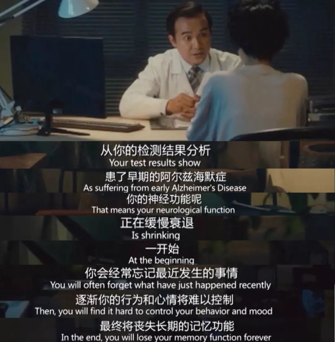 这让她对自己产生了怀疑,于是选择去医院检查。可却从医生口中听到了一个让人无法接受的结果:“从你的检测结果分析,患了早期的阿尔兹海默症。你的神经功能呢,正在缓慢衰退,一开始,你会经常忘记最近发生的事情,逐渐你的行为和心情将难以控制,最终将丧失长期的记忆功能。”