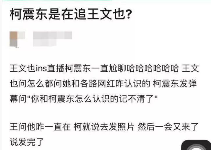到最后,柯震东还要不停吹彩虹屁,夸王文也很好看很漂亮,自己看了直播后转粉了。不过在直播镜头中,王文也显然对柯震东不太感兴趣,一副不愿意多聊的样子。