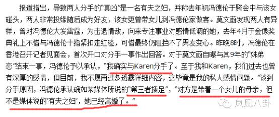 而另一边冯德伦莫文蔚分手了,2007年,结束了9年恋情。分手源于冯德伦的花心与风流。冯德伦承认“第三者插足”:对方是带着一个女儿的母亲,但不是媒体说的‘有夫之妇’,她已经离婚了。让所有人大跌眼镜。