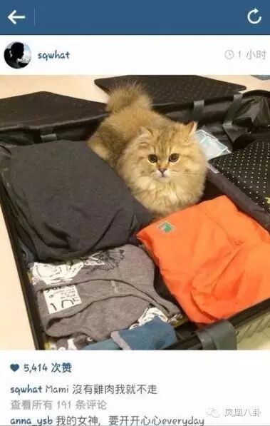 没多久之后,舒淇再次曝光了一张猫站在行李箱里的照片,而照片中箱子里都是男装。