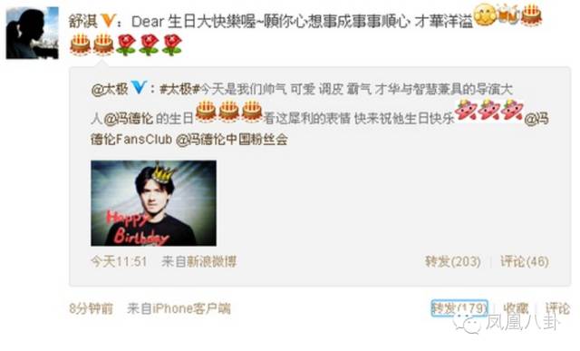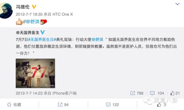 2012年8月9日冯德伦过生日,舒淇发微博喊Dear生日大快乐。