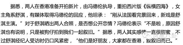 当时就有媒体报道传舒淇和冯德伦假戏真做。但这段绯闻很快就不了了之了。舒淇被曝拍《玻璃之城》时与黎明开展地下情,冯德伦莫文蔚相恋拍拖。