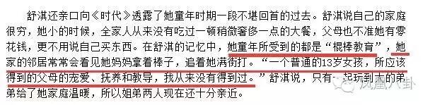 与其说舒淇是想找一个托付终身的人,不如说她渴望家庭的温暖。舒淇的童年并不快乐,小时候被妈妈打,未成年就要出来脱衣服讨生活。