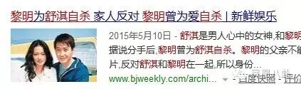 2005年,黎明偶然认识了金喜善,随即发动攻势,两人约会照曝光后,舒淇清醒地认识到她与黎明不会有未来,咬牙提出分手。传闻黎明曾为情自杀。