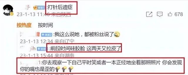 有些网友甚至直接吐槽是“打针”留下的后遗症,质疑说她是不是偷偷整容了