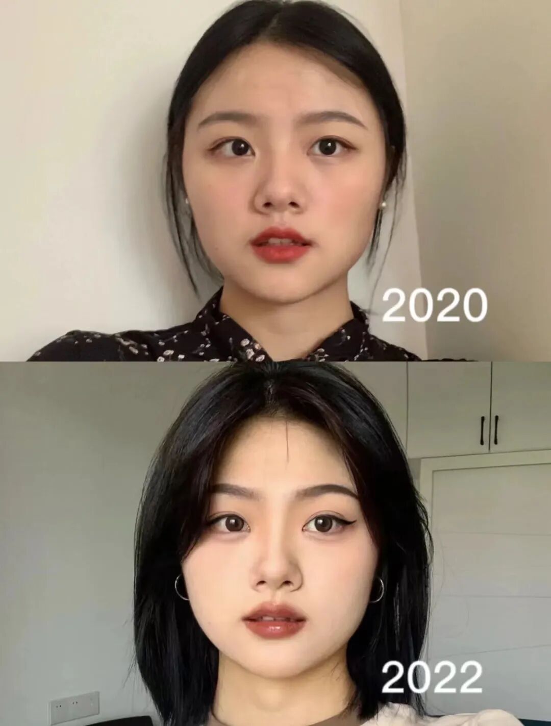 毕竟修容根据不同脸型手法多样,我们很难一下子就找到最适合自己的,而发型操作起来会更容易,弄错了也能补救~