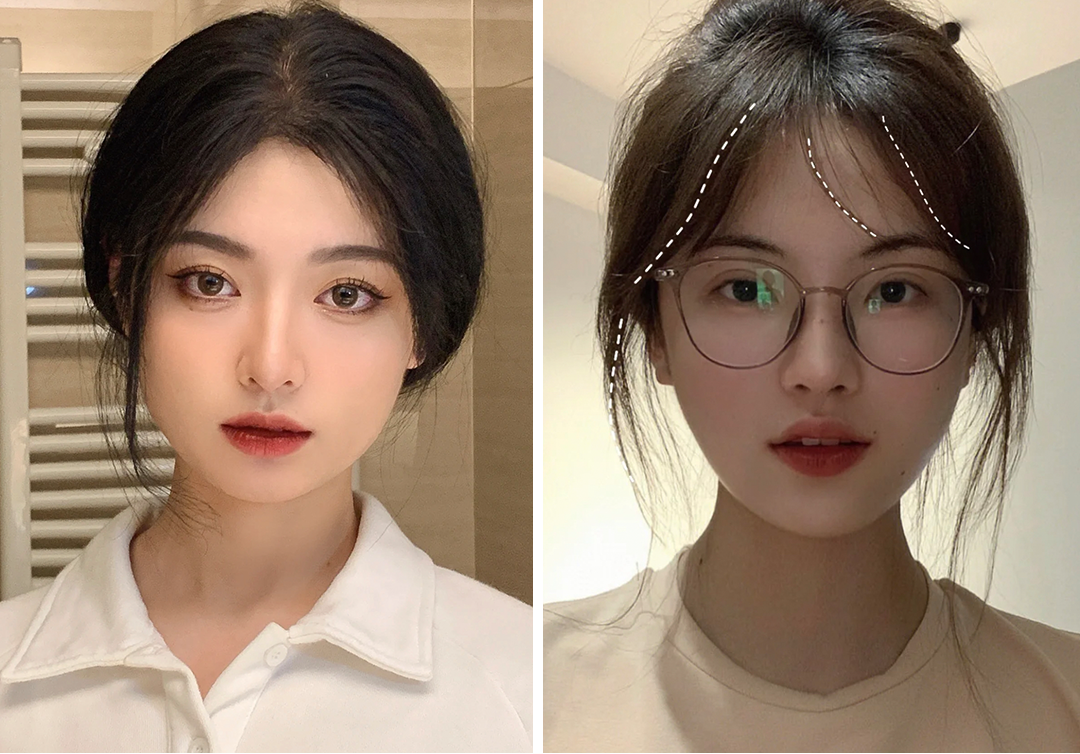 大家化妆的时候,如果没有什么很明显的骨相bug,其实可以学会用刘海和碎发的修饰感和阴影效果去修饰。