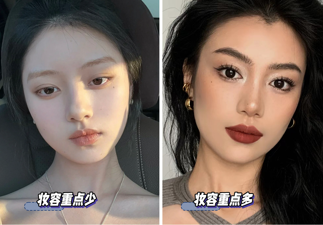 而雾面哑光的底妆,除了看起来像是开了磨皮滤镜似的,对面部轮廓的包容度更高
