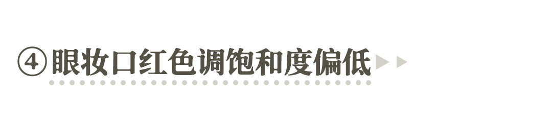 前面提到要给妆容做减法,但如果是在无法避免的情况下,降低各妆的颜色饱和度,也能起到同样的效果。