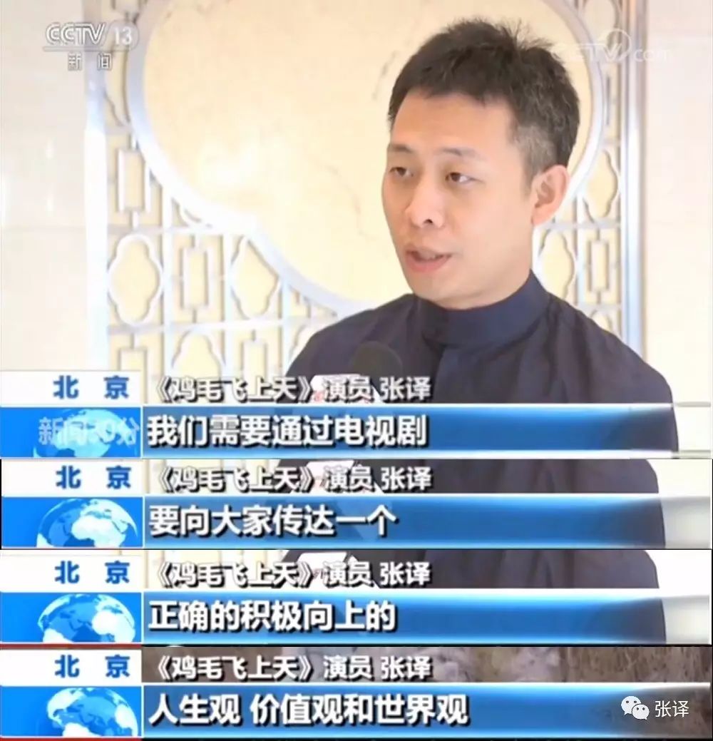 近日,张译在京参加全国电视剧工作座谈会,并作为演员代表发言,张译表示:我是部队培养起来的演员,可能因为穿了十年的军装,让我格外喜欢现实主义题材的电视剧。现实题材的电视剧以最直观的方式,向观众传递积极向上的人生观、世界观和价值观,自己力求在创作之中,以现实主义的表演方式诠释角色。我非常有幸地主演了正面描写改革开放大潮下浙商拼搏奋斗史的电视剧《鸡毛飞上天》,《鸡毛飞上天》播出之后,电视剧市场相继涌现了一批优秀的现实题材作品,让广大观众增强对国产电视剧的信心的同时,也让认真对待表演艺术的演员们终于走出了迷茫。张译坦言,一部优秀的现实题材作品,能够引起人们对社会问题的广泛关注,也能帮助演员实现社会价值。表演艺术是一门涵盖非常广泛学科,除了声乐台词形体表演四门功课要扎实以外,要求演员在文学、美学、哲学、心理学、自然科学和社会科学方方面面都得有一定的涉猎。所以,专业的学习是必要的,即便是一名成熟演员,依然应该不断地学习,努力提高自己各方面的修养。