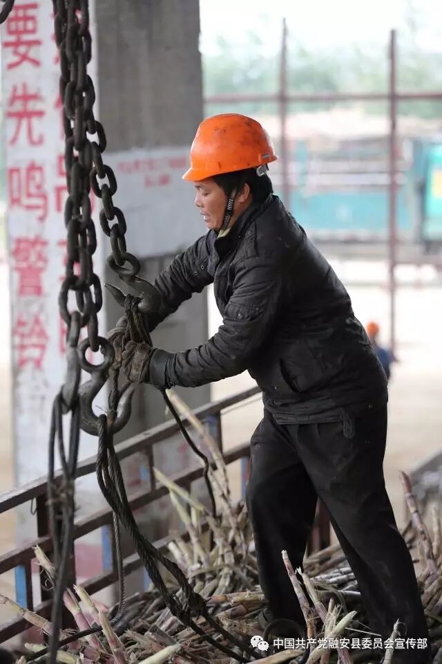 2017年1月1日,在凤糖集团广西柳州市融安制糖有限公司,一名工人在吊装甘蔗。(谭凯兴 摄)