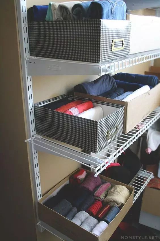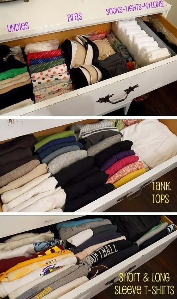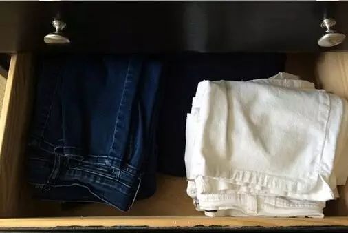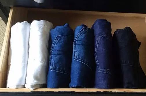 当然,如果你懒得做隔板,直接将衣物卷成条状排列放置,这样也比折叠堆放来得方便~