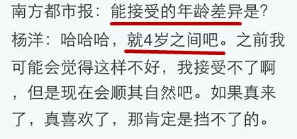 杨洋再接受采访的时候,说可以接受年龄差4岁