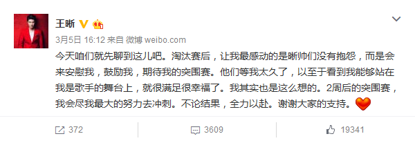 这场所有歌手都出大招的淘汰赛,他还是拿下了第三的好成绩。然而,这并没有什么卵用。综合排名下来,还是淘汰了。于是,我低音男神在微博上留下了这么一段话。