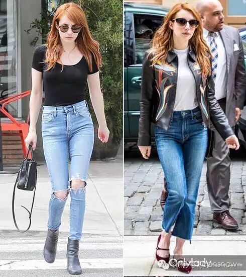 小个女界的穿衣典范Emma Roberts在裤子的选择就抱定了一个原则——高腰。