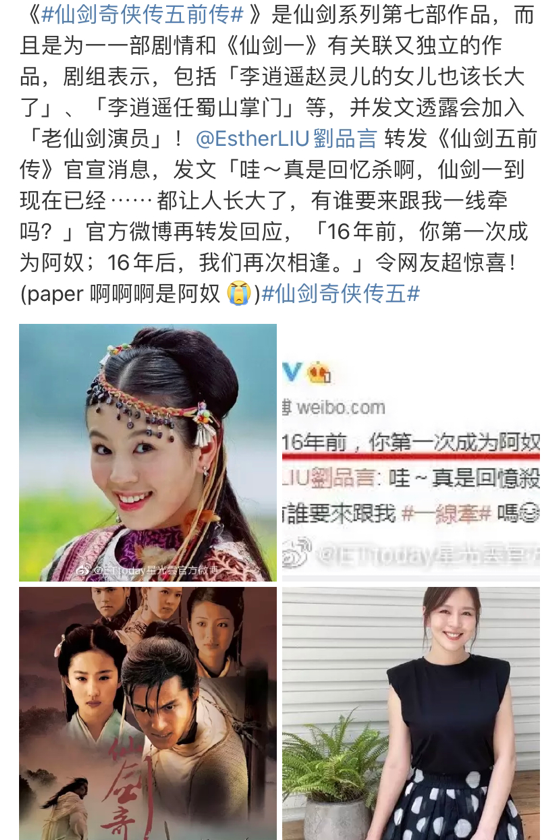 5月12日,有网友在社交平台上发布了一条关于对《仙剑奇侠传五前传》的内容分析的动态,该网友还表达了对刘品言能够重回仙剑的期待。