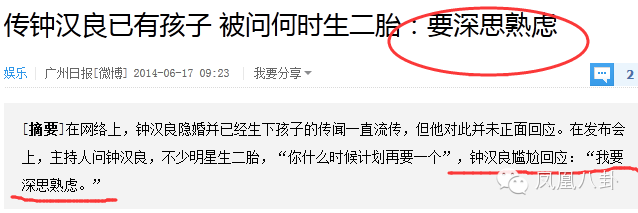 2014年6月《十月围城》宣传期,在发布会上,主持人问钟汉良,不少明星生二胎,“你什么时候计划再要一个”,钟汉良尴尬回应:“我要深思熟虑。”如今看来更像是承认了女儿,真的已经考虑二胎了。