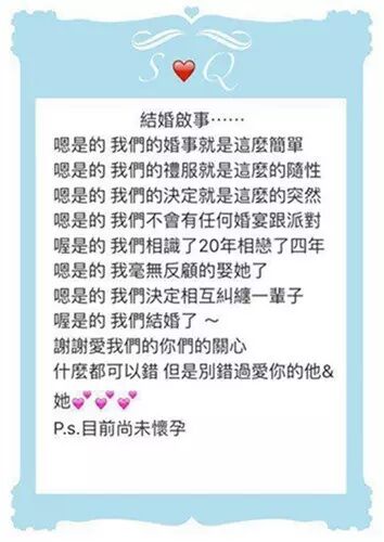 与冯德伦相识二十年,相恋四年,他们的喜讯并没有像其他明星一样让人只觉得是娱乐,反而在最近的屡屡离婚事件中如同一股清流,终于等到你,还好我没放弃。