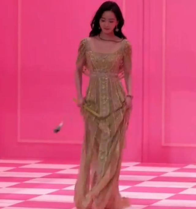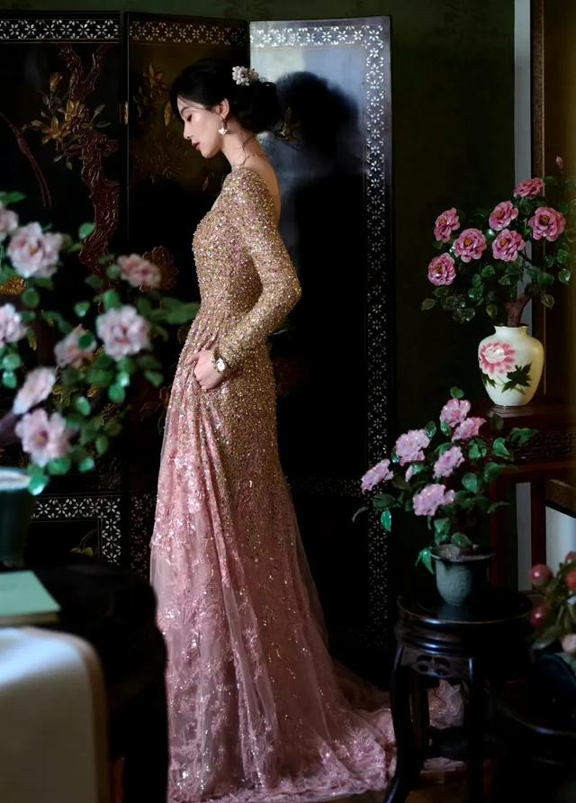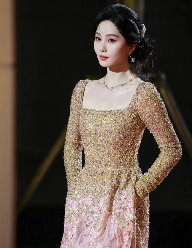 "行走的东方美人诗意大片现场"。首先是6月12日的中国时尚产业盛典,她身穿一袭Georges Hobeika刺绣亮片礼服,搭配古风绒花发饰,仿佛诗画中走出来的古典仕女。网友纷纷惊呼:"神仙下凡了!这才叫传统与时尚完美融合!"层层叠叠的亮片刺绣勾勒出东方团扇图案,加之飘逸裙摆,每一步都像在徐徐写意。