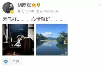 有人说,如果用这种维护粉丝的态度对待郑爽,才是真爷们。面对辱骂,胡彦斌显然不受影响,不久后又发了一条旅行微博,称自己心情好。