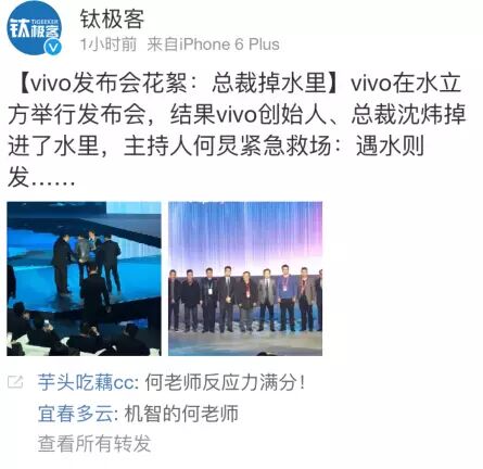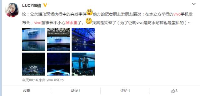何老师这反应小编给满分哈哈哈,不过为了证明vivo是防水耐摔,总裁也是蛮拼的