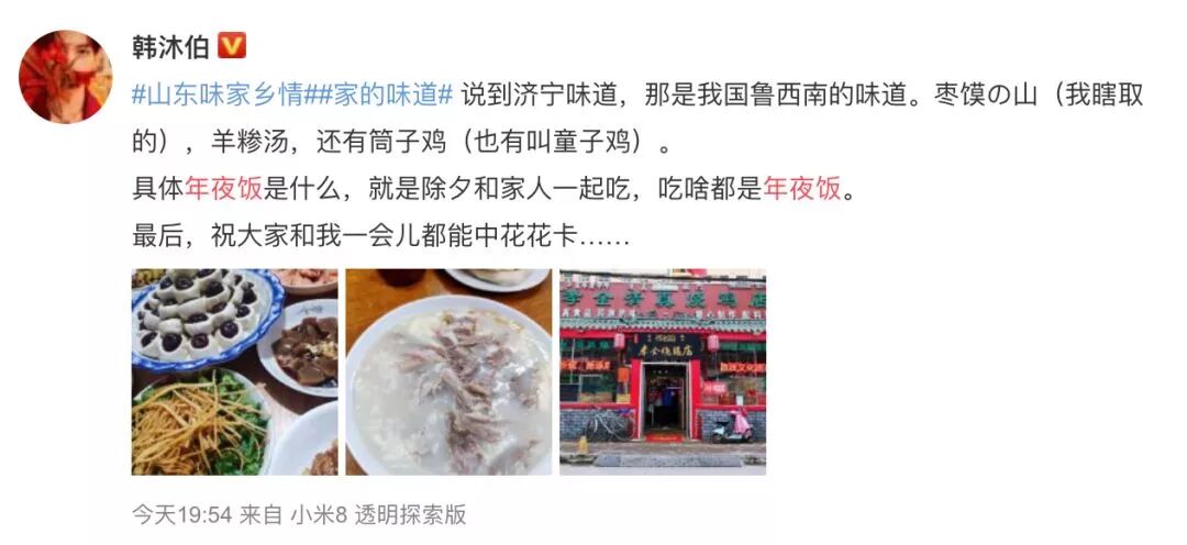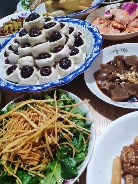 演员韩沐伯晒出的年夜饭很有地方特色,