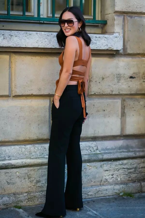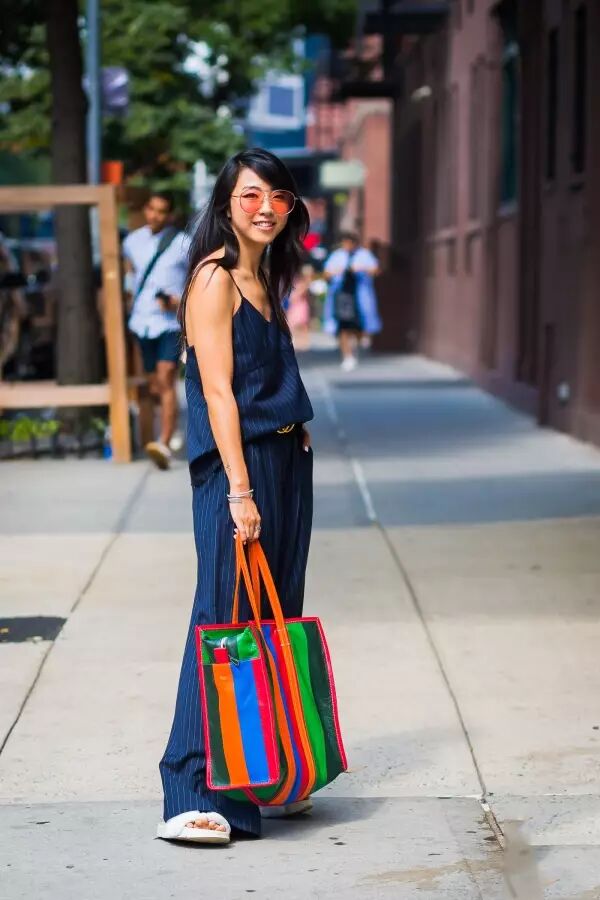 天气热的时候可以用吊带来搭配拖地裤,女人的性感与气场就这样轻松展现!