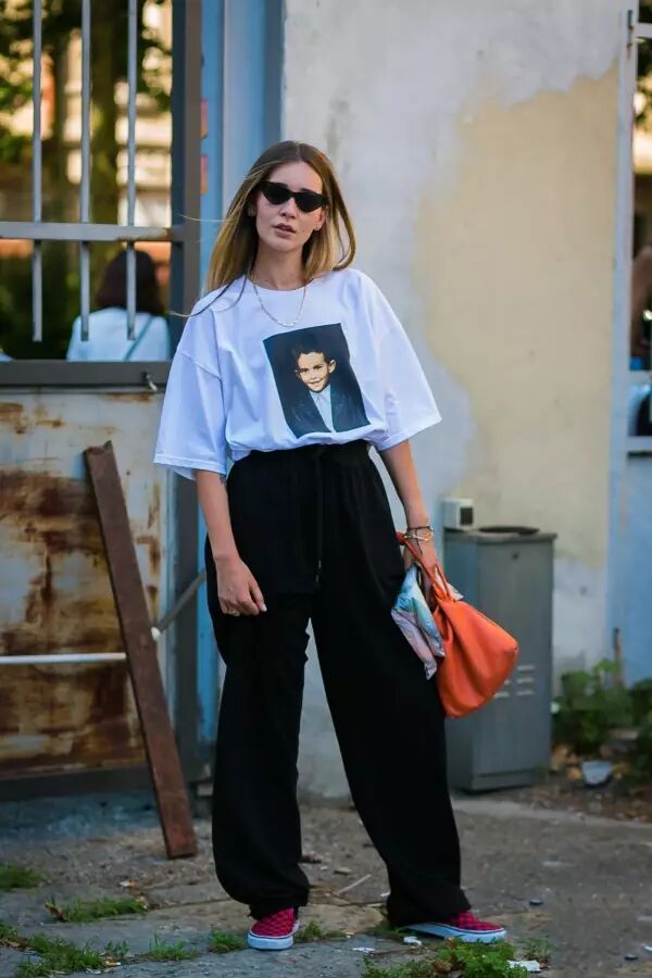 想要休闲范儿,拖地裤+T恤就能满足你,轻松随意,舒适度不错,而且宽松型的拖地裤,谁能够看出来你的腿是粗还是细,是直还是不直呢?