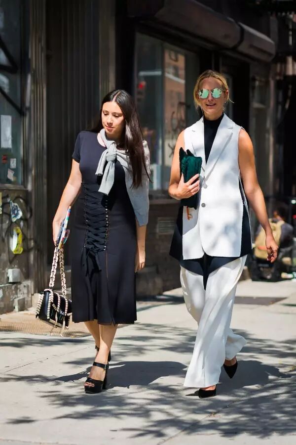一件马甲搭配西装拖地裤,职场女性大概会青睐于此。全身经典简约的黑白配更是打造出了职场人的干练与气场。