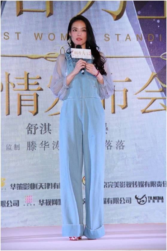 女神舒淇穿上背带拖地裤,清新甜美但又不输气场。