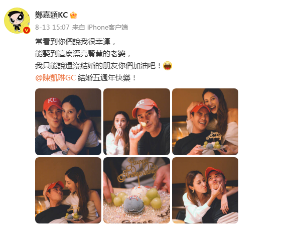 从小在国外生活的陈凯琳,表达爱意的方式非常直白。结婚两周年纪念日,她写道:“找一个每天醒来都能让你想到‘我很幸运有你在我身边’的人——致我最爱的朋友,我亲爱的丈夫,一位忠诚的父亲,及我一生的挚爱。”