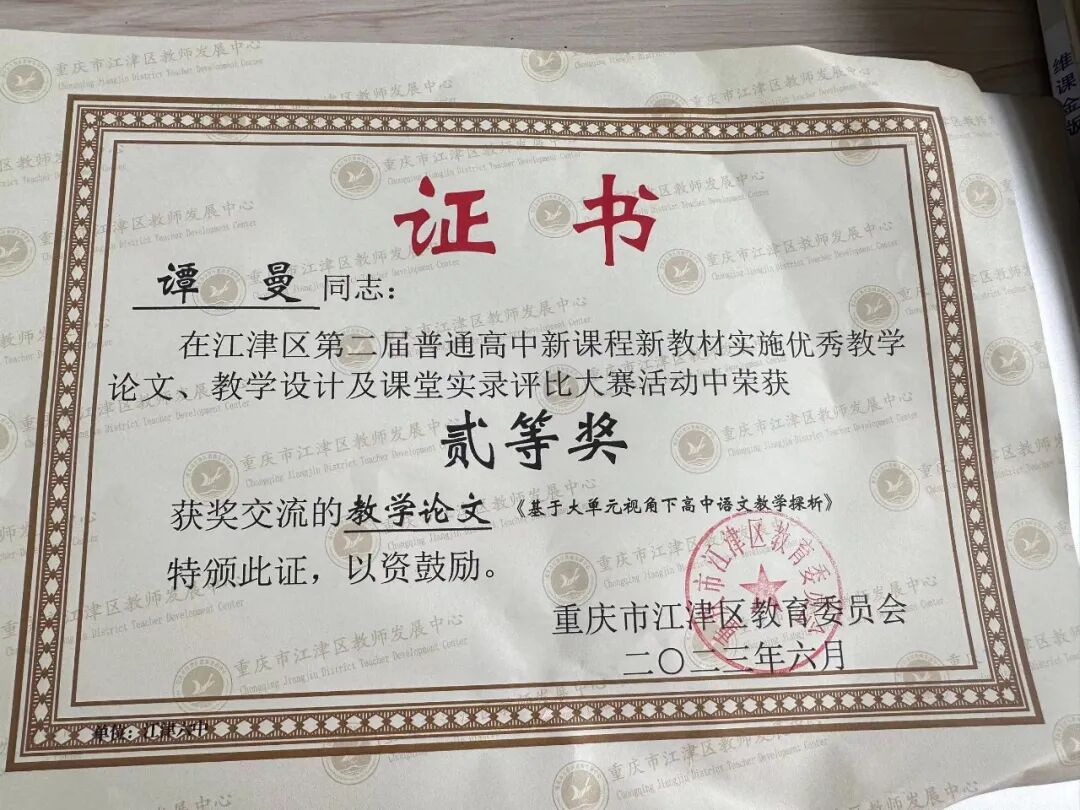 在教学科研方面,夏颖老师取得的成果更是斐然。他撰写并获得区级奖项教学论文15篇、获得市级以上教学论文10篇,指导学生获市区级奖项7人次。他曾与其他教师研究过“现代信息技术在语文教学中的运用”、“学生自主学习能力的培养”、“游戏精神在语文教学中的运用”等课题。在教学中,他使用“先学后教”模式,自主学习模式、授导型复习模式,给予学生足够多的探索空间。他还积极鼓励学生向校内外刊物投稿,进一步提高学生作文水平。在他的指导下,众多学生取得了优异的成果。比如,2022届12班穆鑫雨同学的一篇文章被南川区区级刊物<<金佛山>>采用出版。