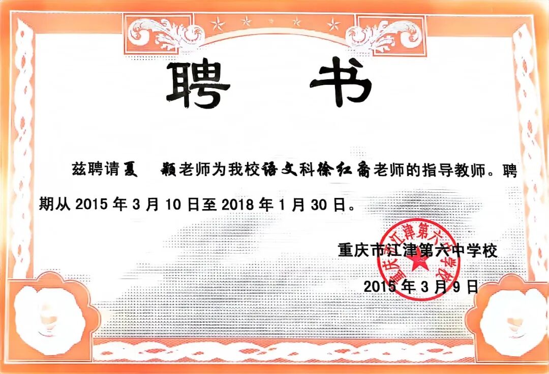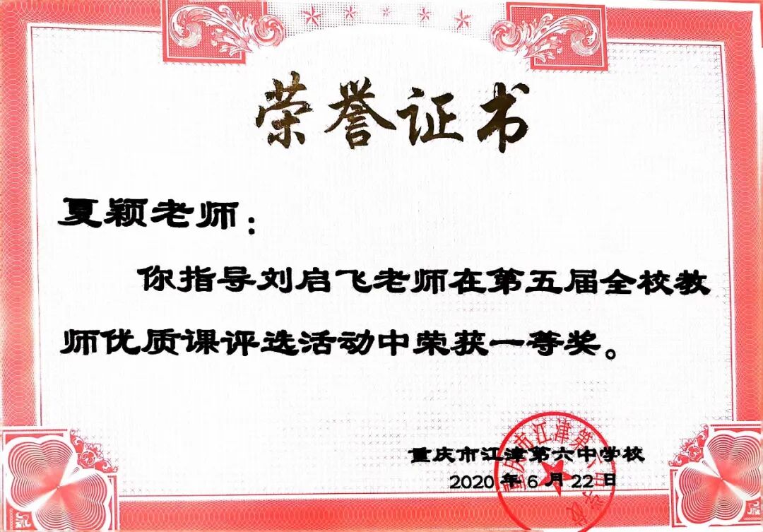 “船载千斤,掌舵一人”。对于整个六中的语文教学工作,夏颖老师义不容辞的成为了青年教师的引路人。他先后担任过刘莉、胡德红、徐红裔、刘启飞、余明珠等青年教师的指导老师,受导老师政治思想素质和教育教学水平得到很快提升。其中,徐红裔老师2018年被评为第五届区级骨干教师,2022年9月被遴选为首批川南渝西(泸永江荣)名师工作室成员;白建焱老师和周金花老师曾获评“江津区高中教学工作先进个人”。