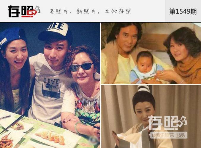 ▲图左为严慧明与儿女,图右上为严慧明与徐少强旧照,右下为严慧明多年后再扮李莫愁