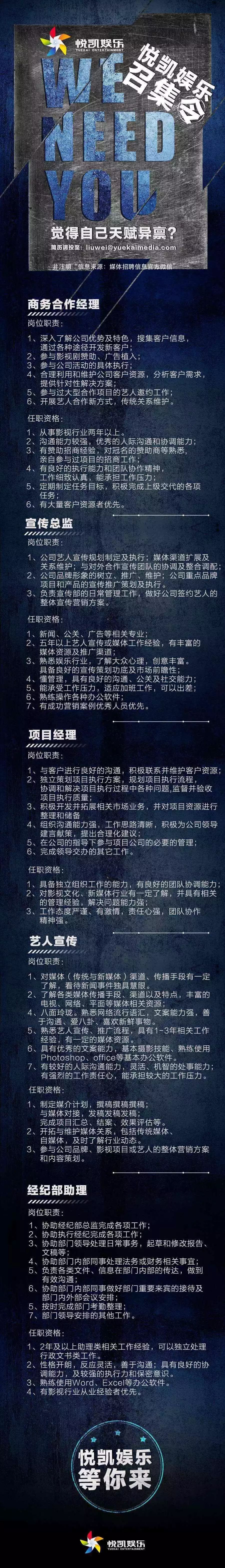 杨洋、宋茜悦凯娱乐大招募 如果你也天赋异禀 媒体招聘信息 内地男星 2016-07-26 22:22:35 1071 创作不易,用心坚持,欢迎请BaGua喝几杯爱心咖啡!打赏并支持本文 打赏并删除本文 …… 创作不易,用心坚持,欢迎请BaGua喝几杯爱心咖啡!打赏并支持本文 打赏并删除本文 感谢您的支持鼓励,我会继续努力的!文章地址:用户邮箱:打赏金额:USDT 请输入数字点击”去打赏“,即可进行打赏支持本文章哦 杨洋 About the Author 媒体招聘信息 功能介绍:全国领先的泛媒体(含TMT行业)招聘平台,每天权威发布. Related Posts 影视 给影视明星做一份工是个什么体验?王凯张靓颖杨幂等明星... 2017-03-08 21:07:39 影视 高薪、大项目、福利好,华策影视华谊兄弟招聘啦 2017-02-21 21:32:40 实习 陈楚生工作室等机构招募宣传经纪实习生 2017-02-04 21:55:43 黄渤工作室大招募 你想要的都有! 2016-10-16 21:51:03 杨洋、宋茜悦凯娱乐大招募 如果你也天赋异禀 2016-07-26 22:22:35 发表评论