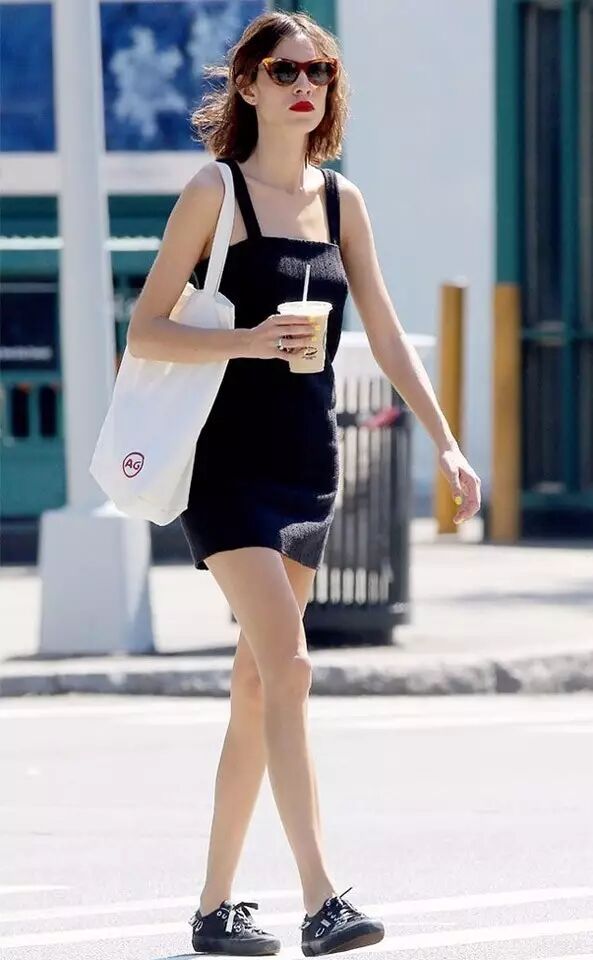 单穿背带裙+纯色帆布包,也能有少女感。搭配休闲鞋,这个造型非常的随意又舒服,很适合夏日里的“懒星人”一招时尚出街。