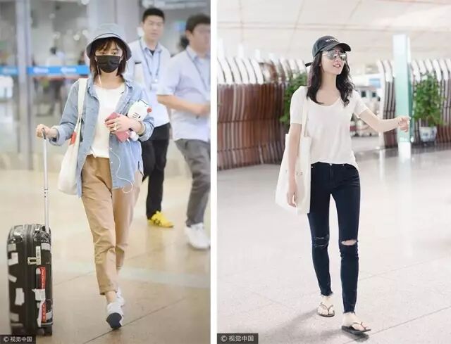 谭松韵休闲一身休闲装,背个帆布包,虽然戴着口罩仍是挡不住的少女感。王鸥白T恤+黑牛仔,脚踩人字拖,肩背帆布包,休闲悠哉,走个机场怎么舒服怎么来。