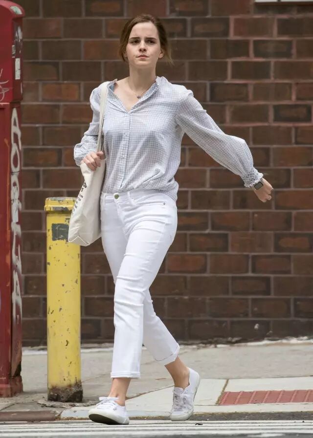 Emma Watson最近出门衬衫白裤小白鞋,肩上背个帆布包,是阳光文艺的气质。